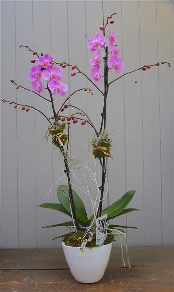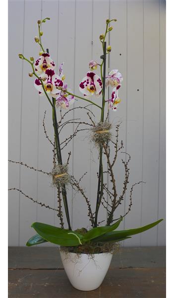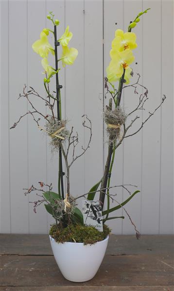 A beautiful, large, double stemmed orchid in a ceramic pot. Please pick the colour you would like.